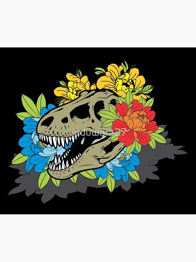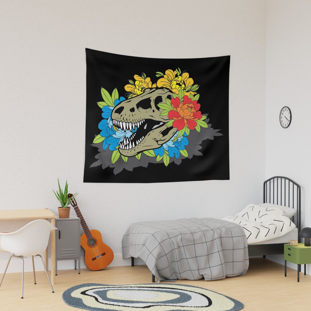 Jurassic World T Rex Skull With Wild Flowers Tapestry