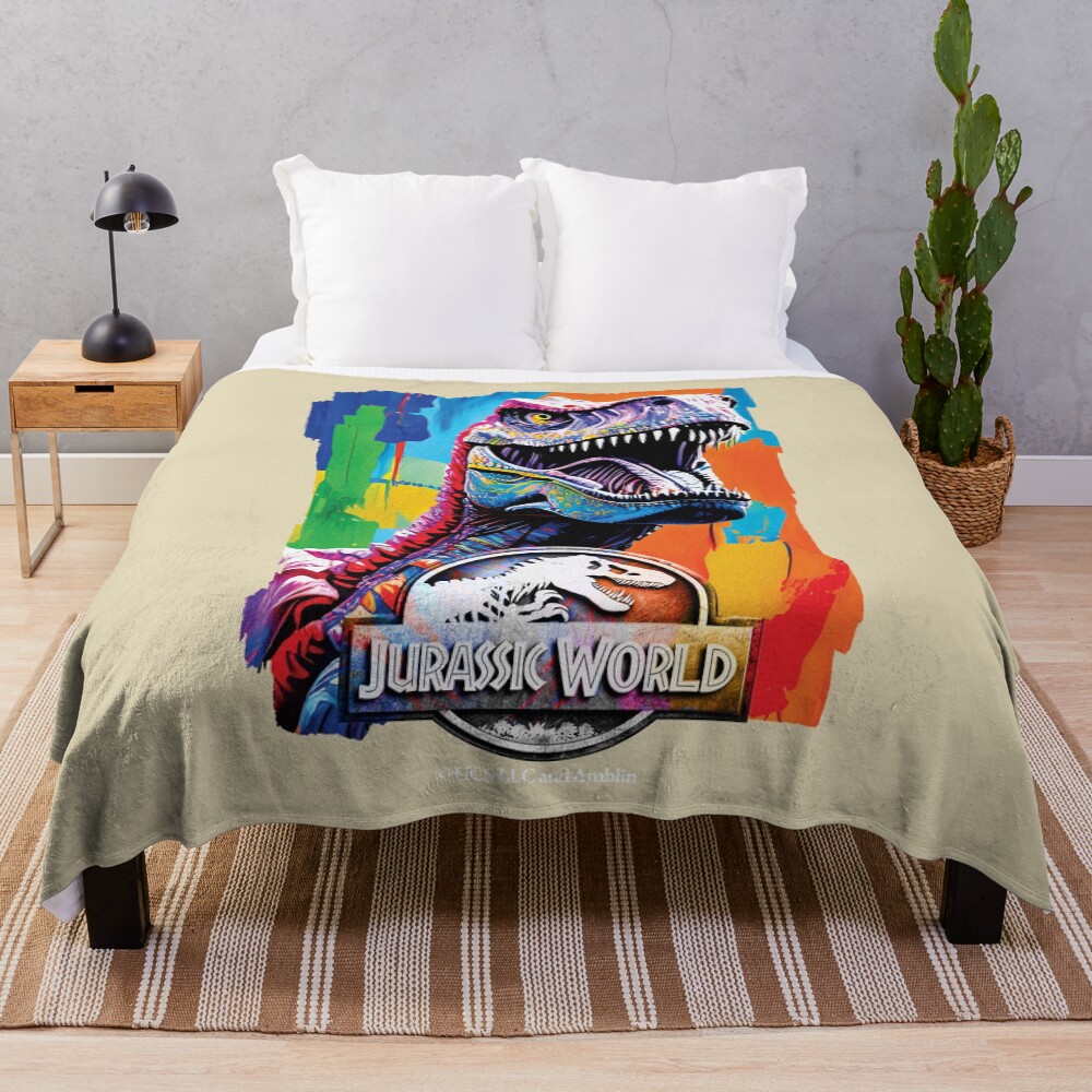 Roaring T Rex Jurassic World Throw Blanket